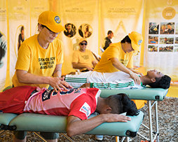 Саентологических волонтёры предоставляют ассисты, чтобы принести спортсменам облегчение и успех.