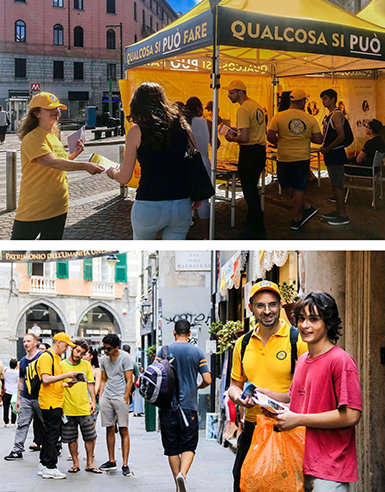 Саентологические волонтёры Милана регулярно посещают окрестности, предлагая помощь всем и каждому. Их жёлтый шатёр украшает площадь Торре-Арджентина, где местные жители могут прочитать панели о 19 главах справочника «Саентология: настольная книга», взять брошюру по любой из этих тем и даже прямо на месте пройти семинар. Двое посетителей рассказали, что их всегда сильно интересовала Саентология и им понравилось, как свободно можно зайти в этот шатёр, чтобы выяснить всё самим.